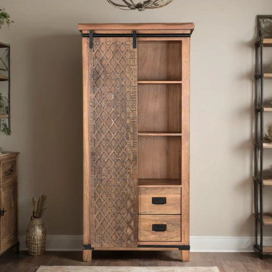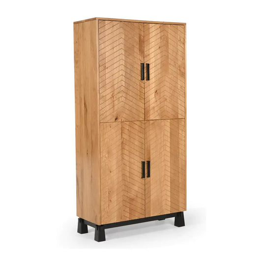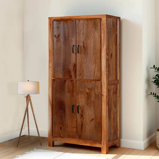 Relya Solid Natural Oak Wood 4 Door Almirah
