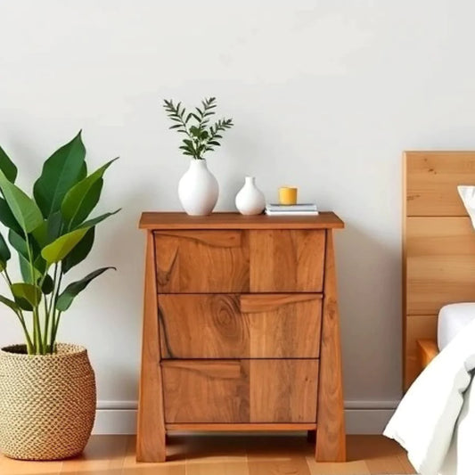 Twonique Solid Wood Rustic 3 Drawer Side Table