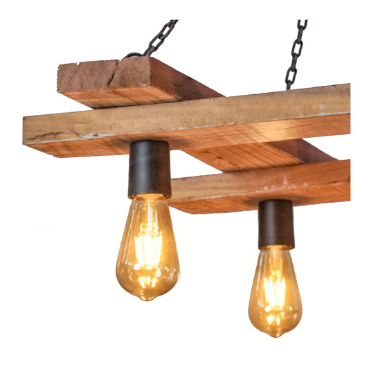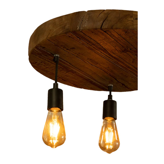 LumenCraft Rustic Reclaimed Wood Industrial 4 Bulb Chandelier