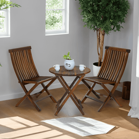 Flexura Solid Wood 2 Seater Folding Dining Table and Chairs Set