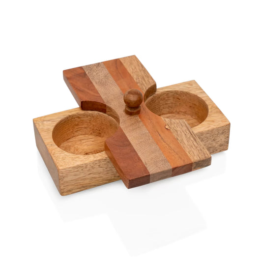 Mangacia Handcrafted Acacia Wood Mukhwas Box with 2 Compartments