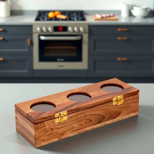 Mangacia Handcrafted Wooden Mukhwas Box with 2 Compartments